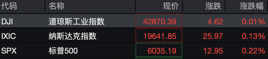 当天,美股三大指数小幅低开,随后震荡走高,截至发稿,三大指数均翻红。