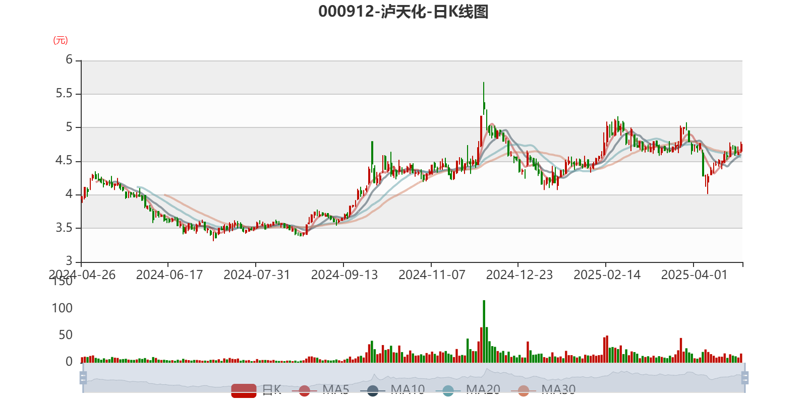 年报显示,2024年末的公司十大流通股东中,持股最多的为泸天化(集团)有限责任公司,占比15.086%。