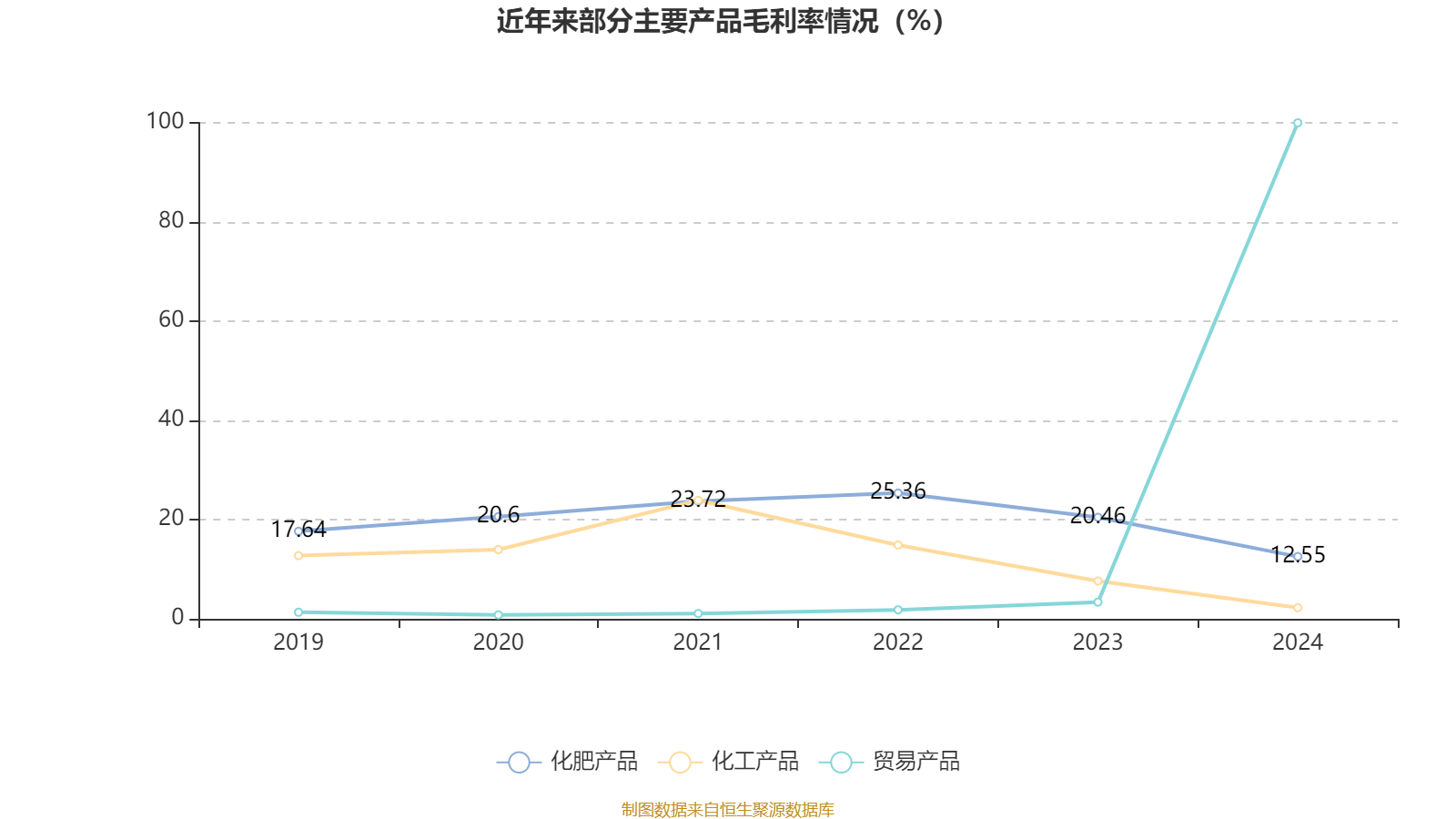 资料显示,公司生产与销售包括尿素、复合肥等化肥类产品;液氨、甲醇、硝酸、硝酸铵溶液、四氧化二氮、车用尿素等化工类产品的。其中,主营业务占比较大的产品是液氨、尿素、复合肥、甲醇。