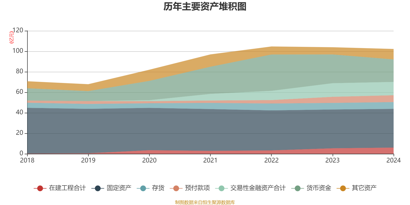 资产重大变化方面,截至2024年末,公司货币资金较上年末减少21.92%,占公司总资产比重下降5.57个百分点;应收票据及应收账款较上年末增加277.48%,占公司总资产比重上升2.19个百分点;预付款项较上年末增加12.97%,占公司总资产比重上升0.85个百分点;在建工程合计较上年末增加13.58%,占公司总资产比重上升0.79个百分点。