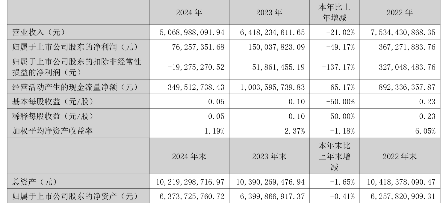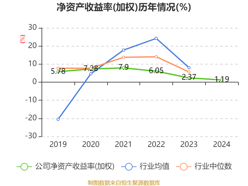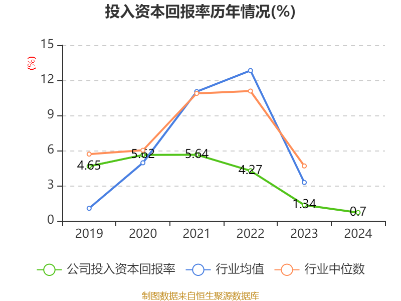 数据显示,2024年公司加权平均净资产收益率为1.19%,较上年同期下降1.18个百分点。公司2024年投入资本回报率为0.7%,较上年同期下降0.64个百分点。
